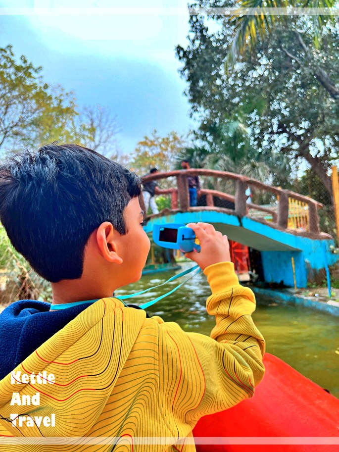 The park features beautifully manicured gardens, towering trees, and a serene pond that adds to its charm. Visitors can take leisurely walks along the winding pathways or relax on one of the many benches scattered throughout the park. Children can enjoy playing on the playground equipment while families can have picnics on the well-maintained lawns. There are some activities to engage kids including a boat ride and bouncy trampolines.